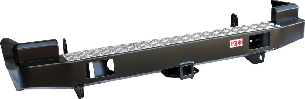 Задний силовой бампер РИФ надежно защитит кузов автомобиля на бездорожье или в городе в случае непредвиденных инцидентов. Бампер оборудован упорами под хай джек и буксирными проушинами для работы с рывковой или буксировочной стропой.
