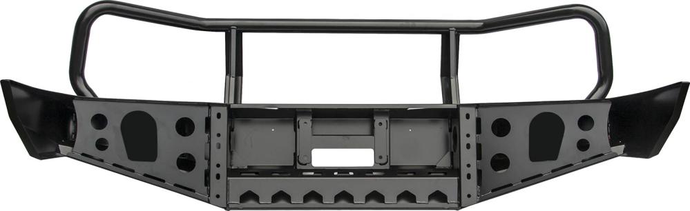 Бампер оснащен мощными упорами под реечный домкрат и буксирными проушинами для работы с рывковой или буксировочной стропой. Тщательно продуманная конструкция внутренних усилителей обеспечивают максимальную надежность бампера, стойкость к высоким нагрузкам и сильным ударам.