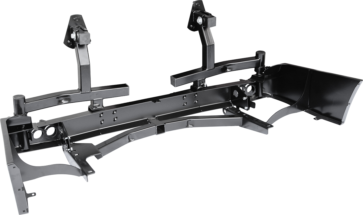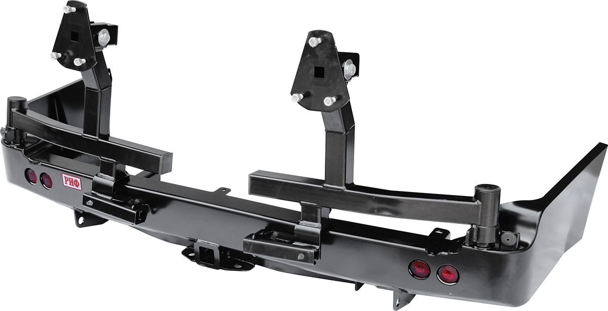В нижней части бампера располагается интегрированный в корпус «квадрат» стандарта 2”, который может использоваться для крепления фаркопа, площадки-ступеньки, буксировочной проушины, площадки под переносную лебедку и пр. Предусмотрены две мощные буксировочные проушины и вырезы для размещения дублирующих сигнальных фонарей (основные могут перекрываться запасными колесами большого диаметра).