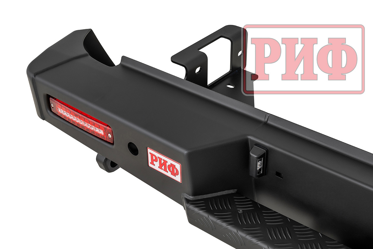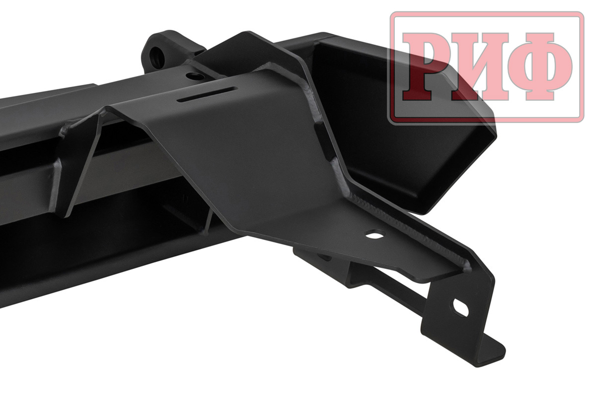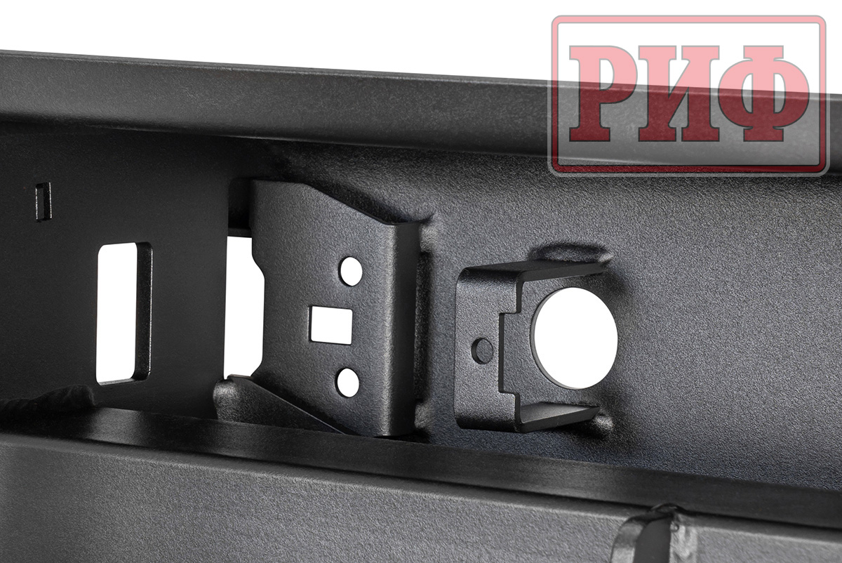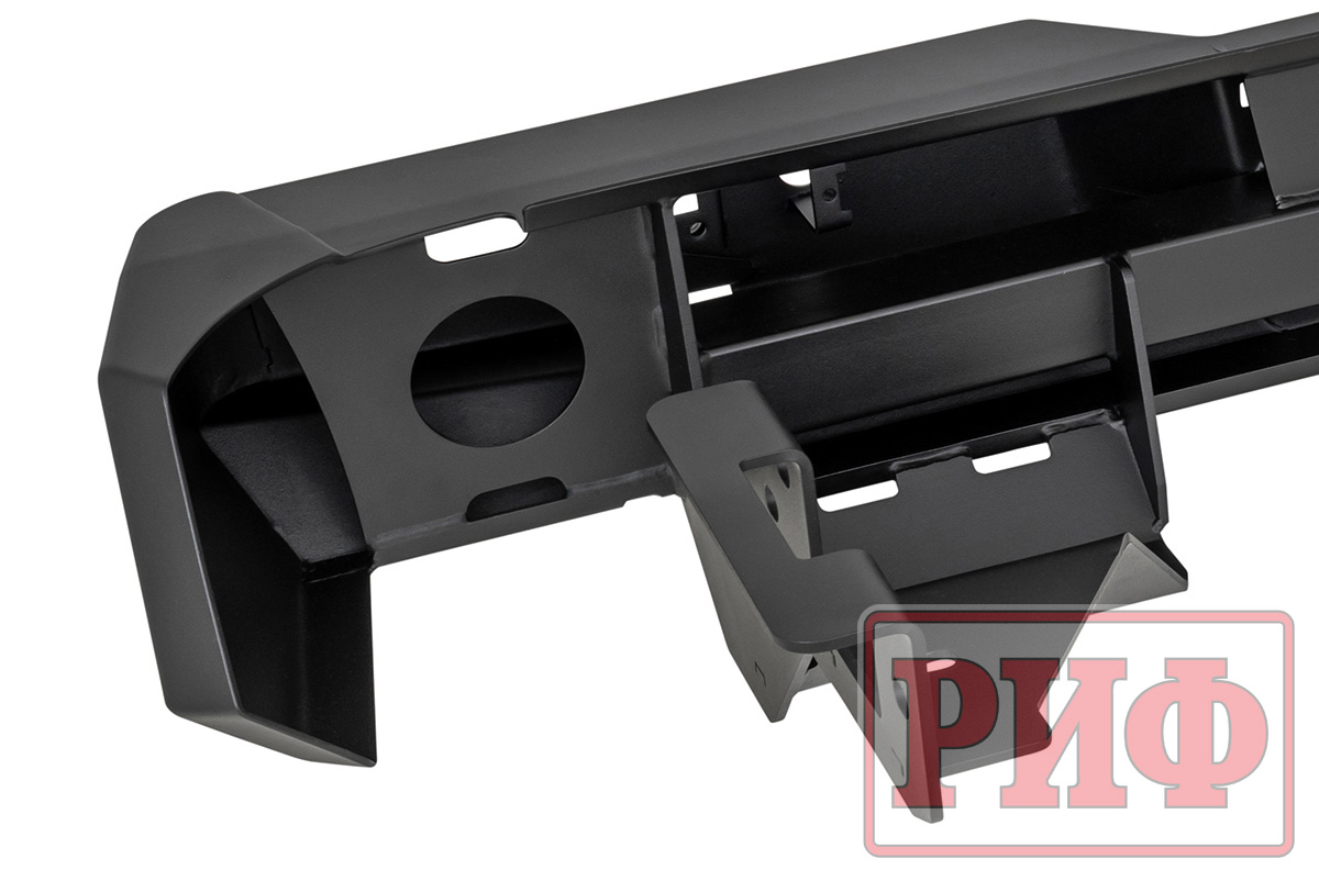 Задний силовой бампер РИФ надежно защитит кузов автомобиля на бездорожье или в городе в случае непредвиденных инцидентов. Бампер оборудован упорами под хай джек и буксирными проушинами для работы с рывковой или буксировочной стропой.