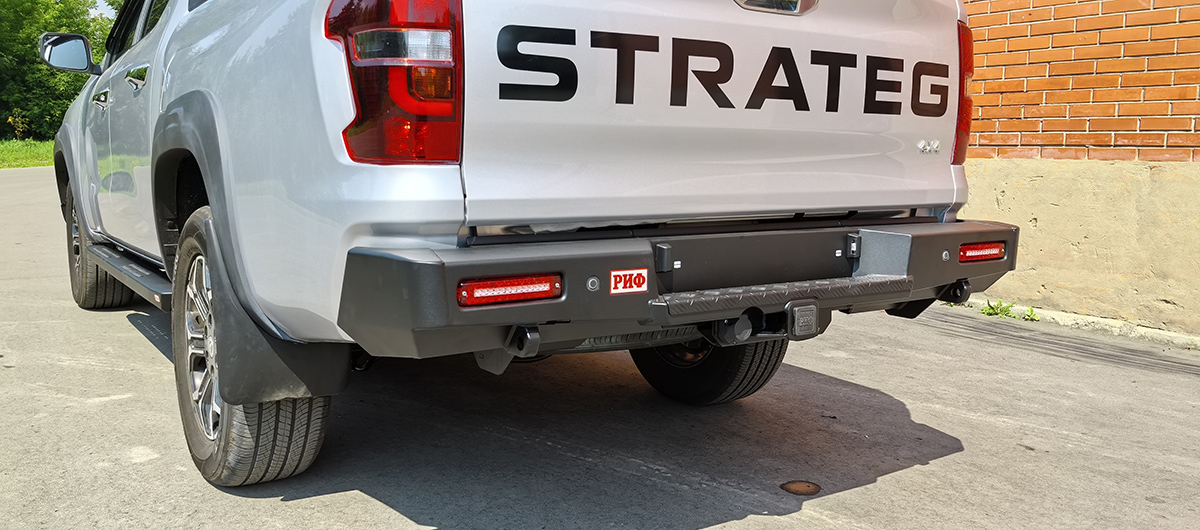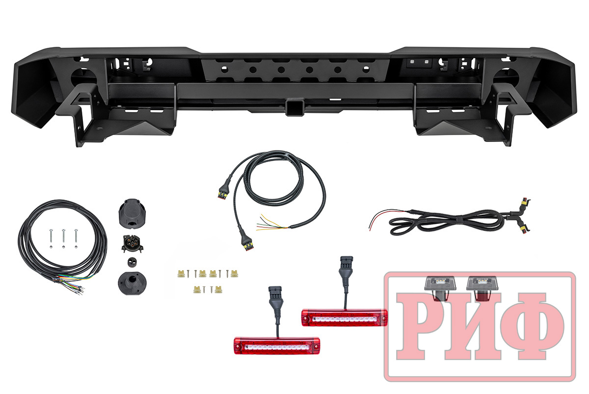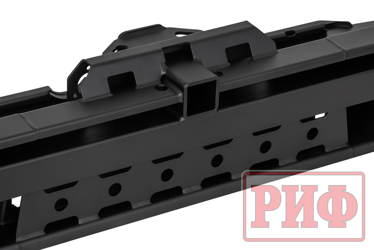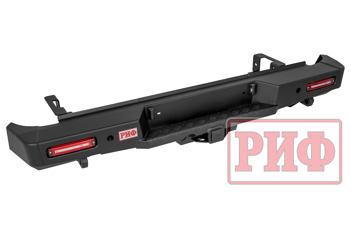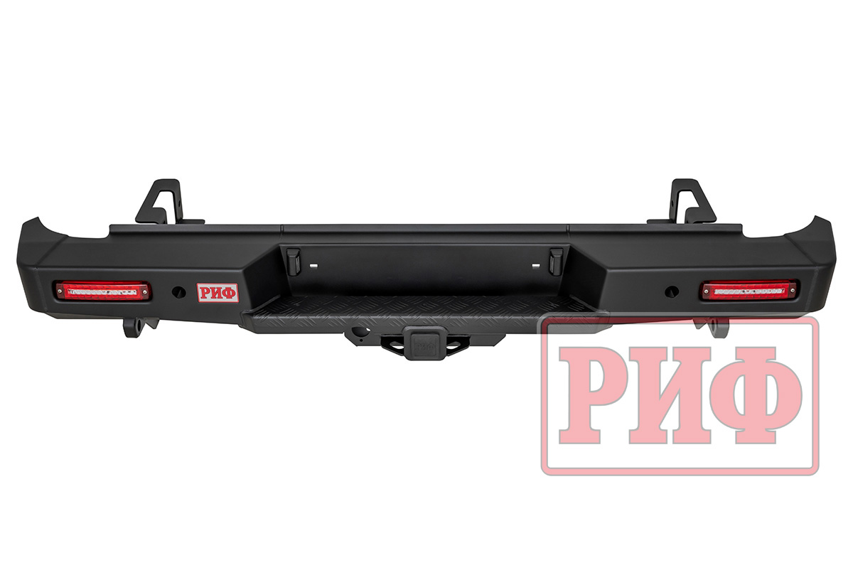 Задний силовой бампер РИФ надежно защитит кузов автомобиля на бездорожье или в городе в случае непредвиденных инцидентов. Бампер оборудован упорами под хай джек и буксирными проушинами для работы с рывковой или буксировочной стропой.