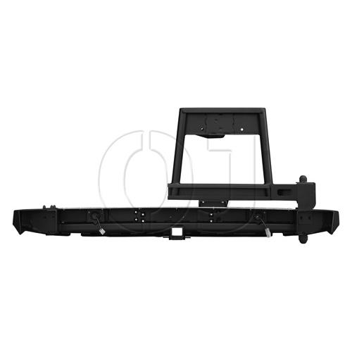 Задний силовой бампер серии Трофи на Lada 4х4 с облегчённой калиткой под запаску. Доп. фонари (заднего хода и стоп-сигнал), рамка номерного знака, дополнительный центральный кронштейн, квадрат 50х50, упоры под реечный домкрат, Al накладка, буксирные проушины.