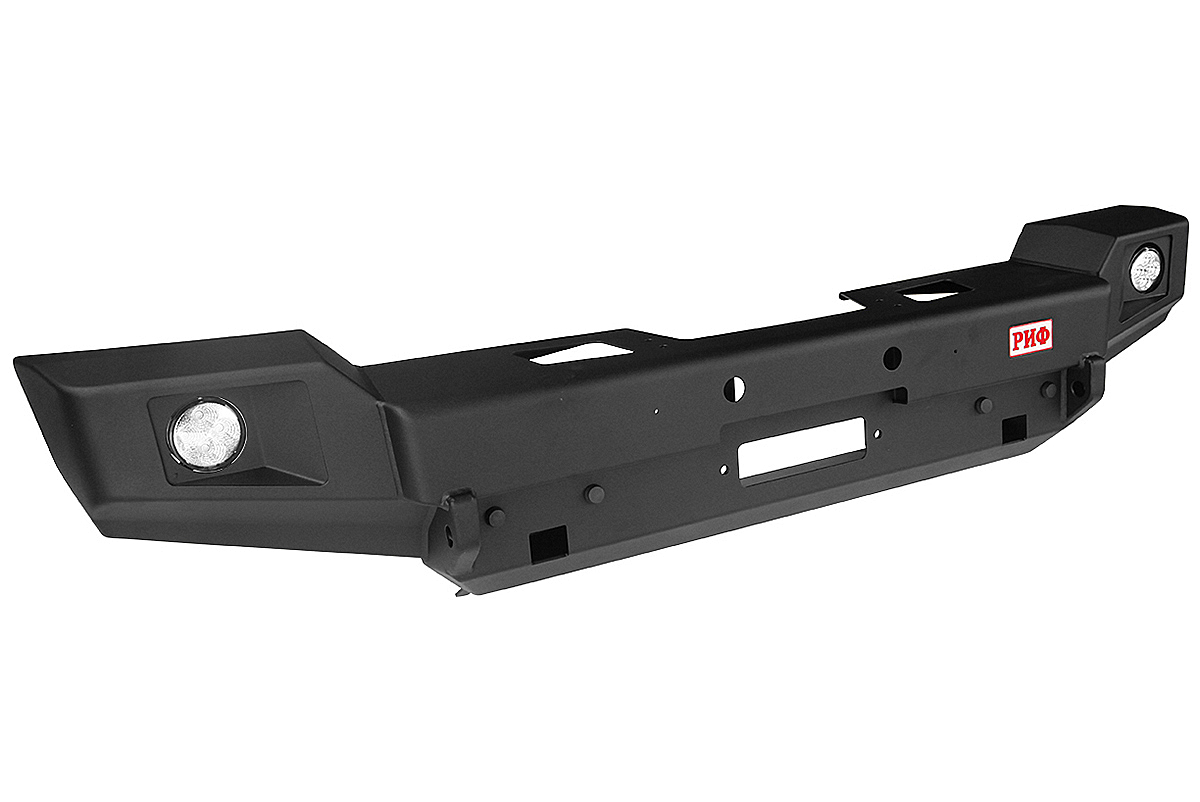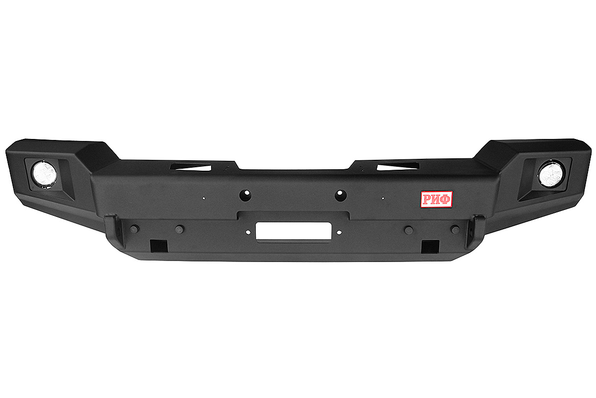 Передний силовой бампер РИФ служит для защиты автомобиля на бездорожье и в городе. В случае контакта или легкого столкновения с препятствием в виде камней, бревен, пней, колей или незадачливых водителей, риск получить серьезные повреждения машины существенно уменьшается, а это очень важно в экспедициях и в повседневной жизни. В бампер интегрирована площадка для лебедки. Оптимальной является лебедка с тяговым усилием 4100-4300 кг. Но бампер позволяет установить и более мощную лебедку с тяговым усилием 5400 кг. Бампер оснащен мощными упорами под реечный домкрат и буксирными проушинами для работы с рывковой или буксировочной стропой. Тщательно продуманная конструкция внутренних усилителей обеспечивают максимальную надежность бампера, стойкость к высоким нагрузкам и сильным ударам.