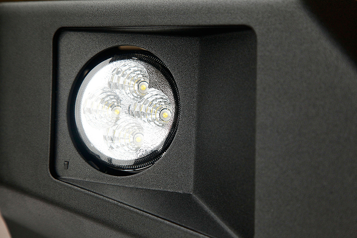 Бампер штатно комплектуется мощными и экономичными светодиодными фарами водительского света РИФ, модель SM-810F! Они формируют плотный пучок дополнительного света, который рассеивается перед автомобилем. Эти фары хорошо освещают дорогу и обочины, обеспечивая более широкую видимость по сторонам. Являются хорошим дополнением ближнего света.