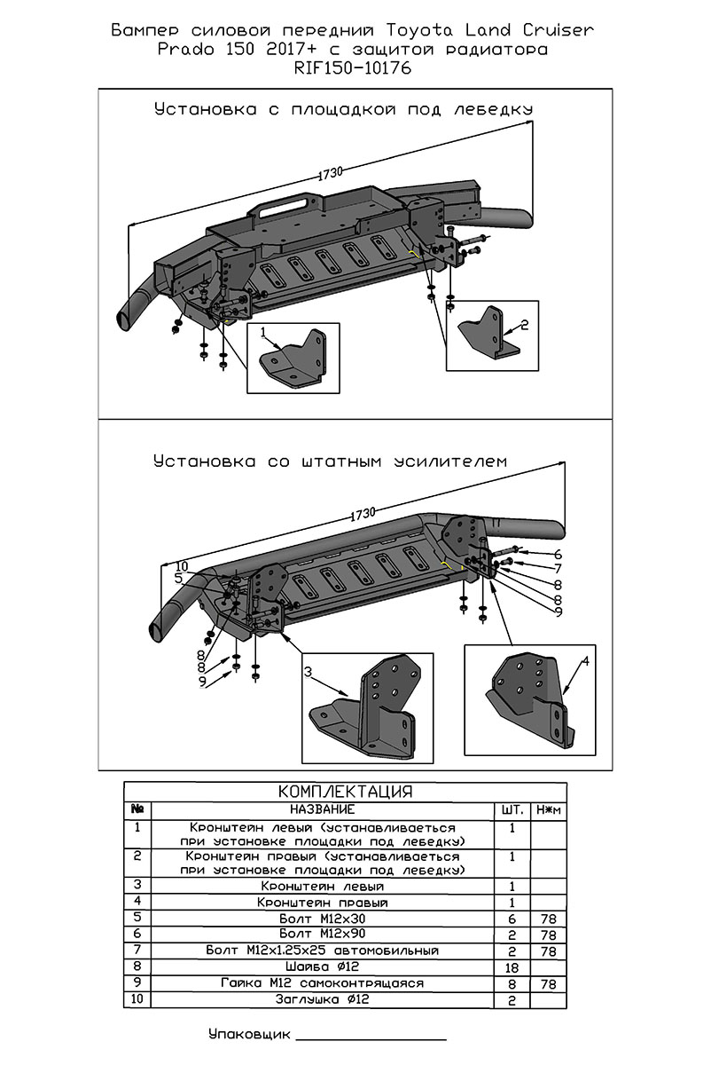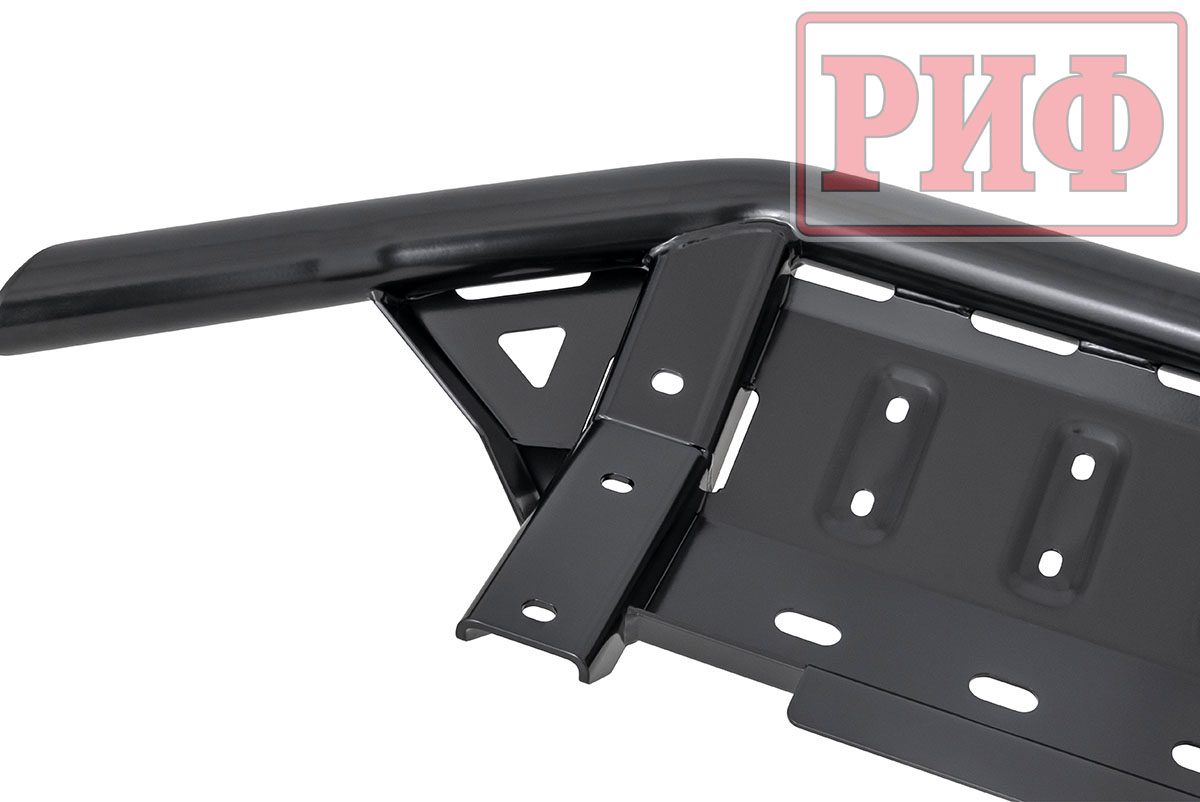 Новая защита совместима с площадкой РИФ под лебедку в штатный бампер RIF150-30001.