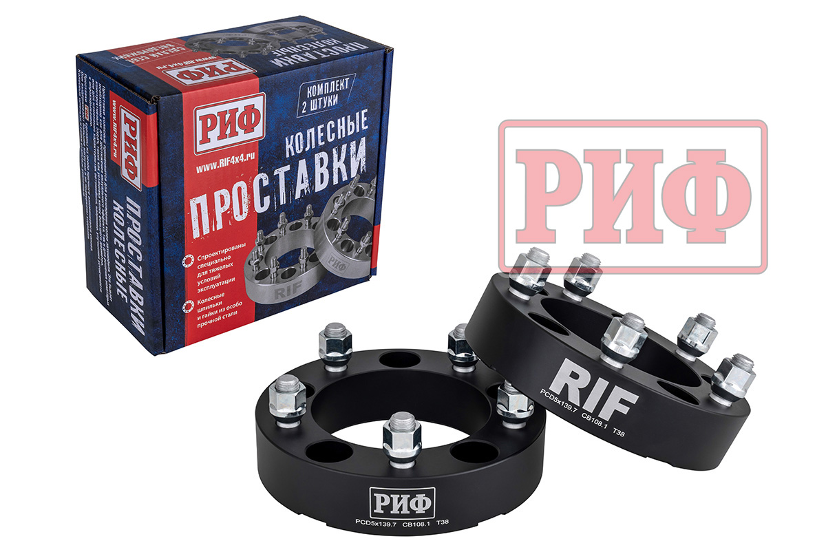 Купить Проставки колёсные РИФ 5×139,7, ЦО 108 мм, толщина 38 мм, 14×1,5 (2 шт.) в Минске с доставкой по Беларуси – 4wd.by