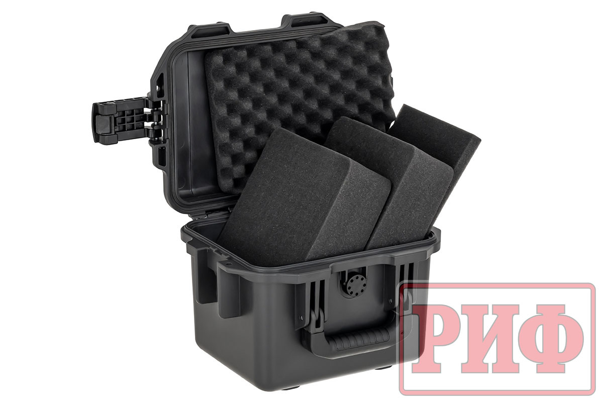 Защитные кейсы РИФ изготовлены из противоударного и чрезвычайно прочного пластика – его можно переехать на автомобиле, и ценное содержимое не пострадает. Кейсы абсолютно герметичны и содержимое кейса гарантировано защищено от доступа пыли и влаги благодаря резиновой прокладке и плотно закрывающейся крышке.