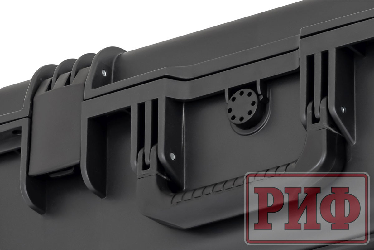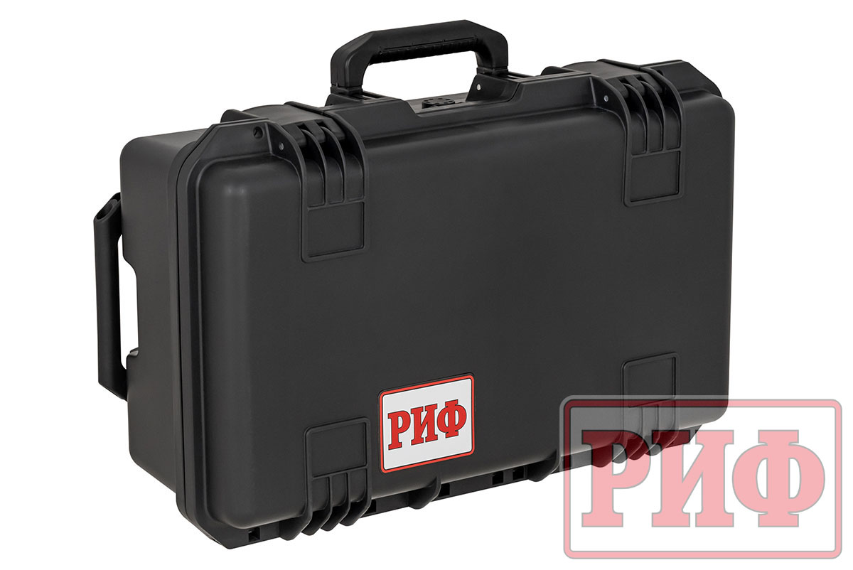 Новый кейс РИФ, также как и предыдущие модели, изготовлен из прочного противоударного пластика, защищен от доступа пыли и влаги резиновой прокладкой и плотно закрывающейся крышкой. На передней стенке есть клапан для регулировки доступа воздуха, что бывает необходимо при перепадах давления и температур. Внутри кейс заполнен плотным перфорированным поролоном для того, чтобы сделать гнезда нужной формы для оборудования.