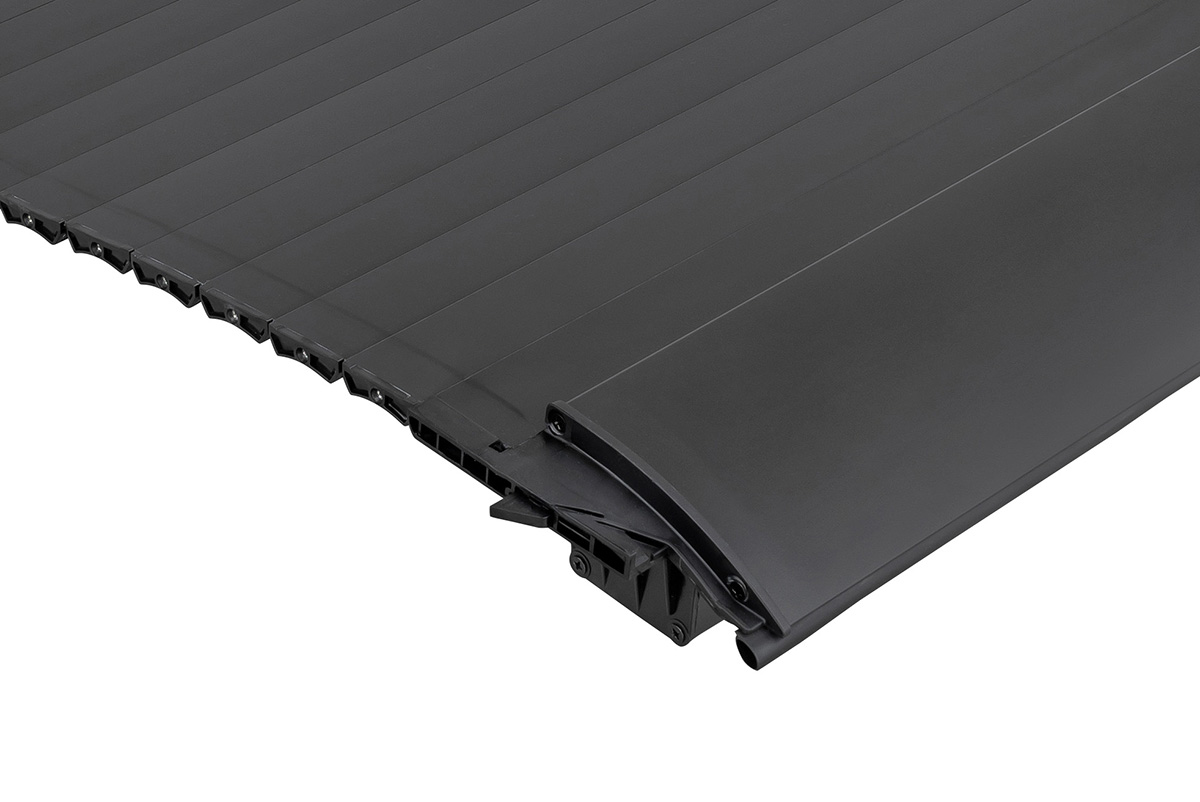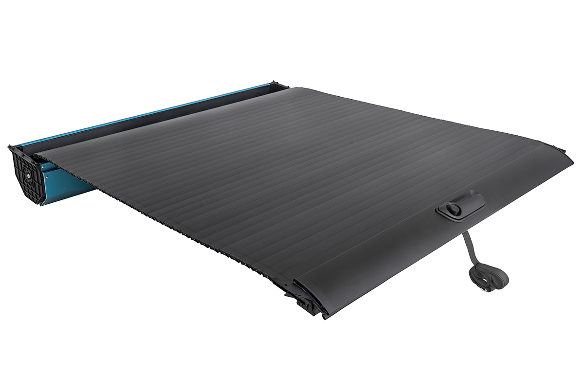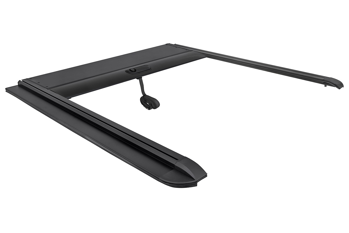 Крышка кузова имеет сдвижную конструкцию роллетного типа, повторяющую форму кузова автомобиля. Роллета крепится к авто четырьмя быстрозажимными струбцинами.