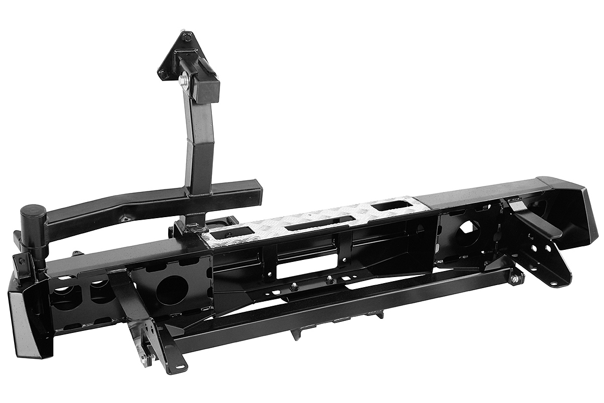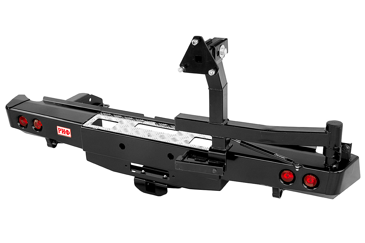 Задний силовой бампер РИФ надежно защитит кузов автомобиля на бездорожье или в городе в случае непредвиденных инцидентов. Бампер оборудован упорами под хай джек и буксирными проушинами для работы с рывковой или буксировочной стропой.