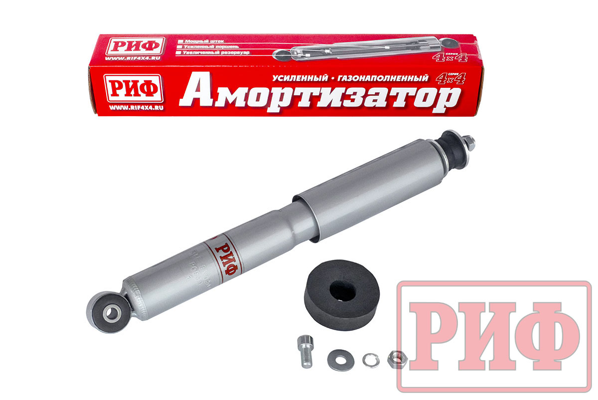 Газ, находящийся под давлением в компенсационной камере наружной трубы, позволяет повысить устойчивость амортизатора к высоким нагрузкам. Масло под давлением газа менее подвержено эффекту кавитации, а значит и меньше вспенивается, в отличие от обычного гидравлического амортизатора. Также, благодаря увеличенному масляному резервуару с большим количеством масла, усиленному штоку и поршню, амортизаторы “РИФ” обладают длительным рабочим ресурсом и обеспечивают великолепную стабильность рабочих характеристик при длительной езде по дорогам общего пользования, отличную курсовую устойчивость, хорошую артикуляцию подвески и приятную плавность хода на бездорожье.