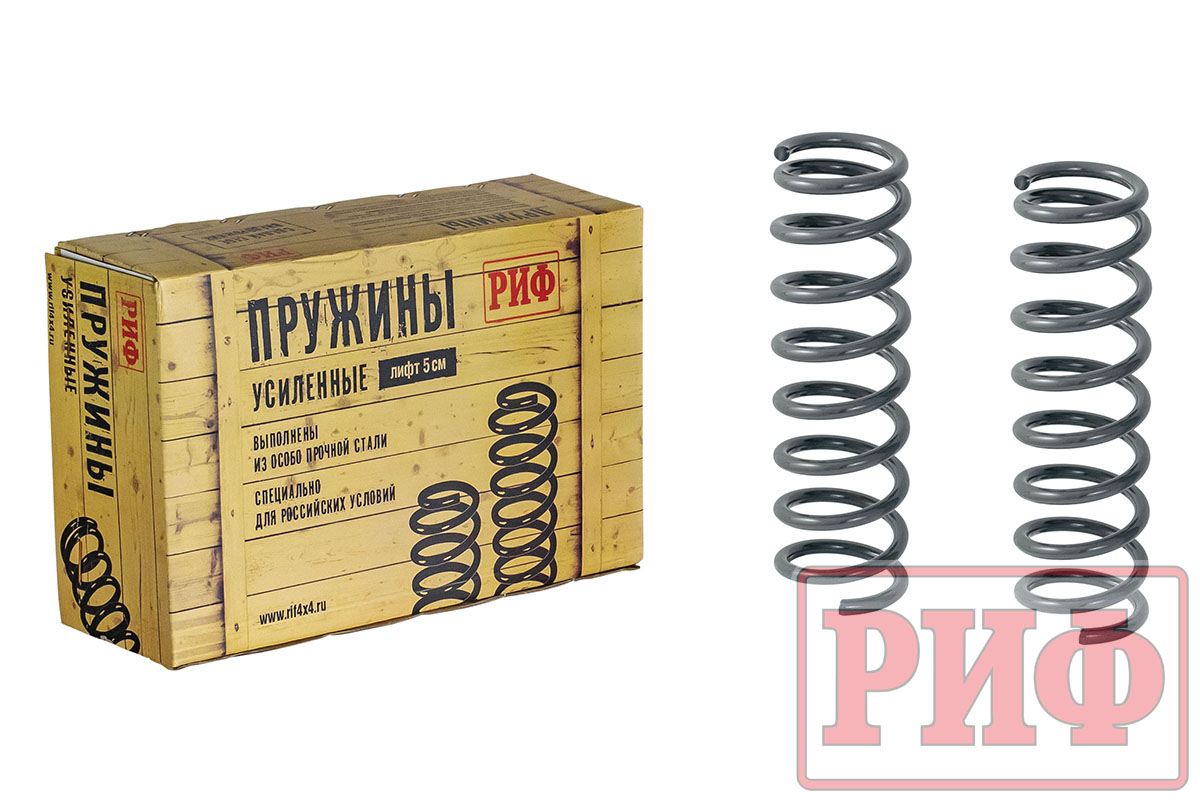 Установка данных пружин РИФ позволяет значительно повысить высоту автомобиля, что не только улучшит его внешний вид, но и обеспечит лучшую проходимость в сложных местностях. Дополнительная грузоподъемность +200 кг обеспечит возможность безопасного и эффективного транспортирования дополнительного оборудования, багажа или других тяжелых нагрузок.