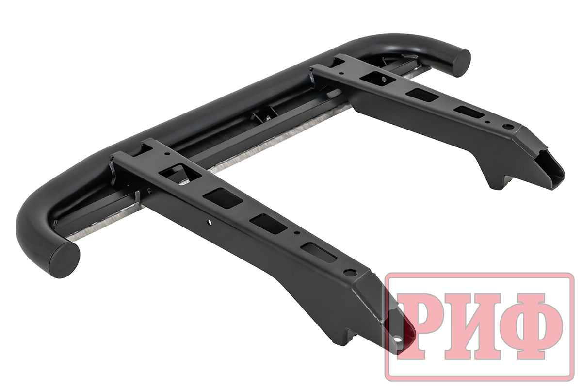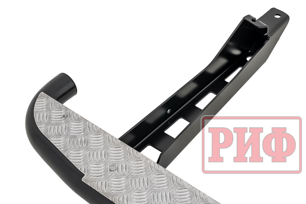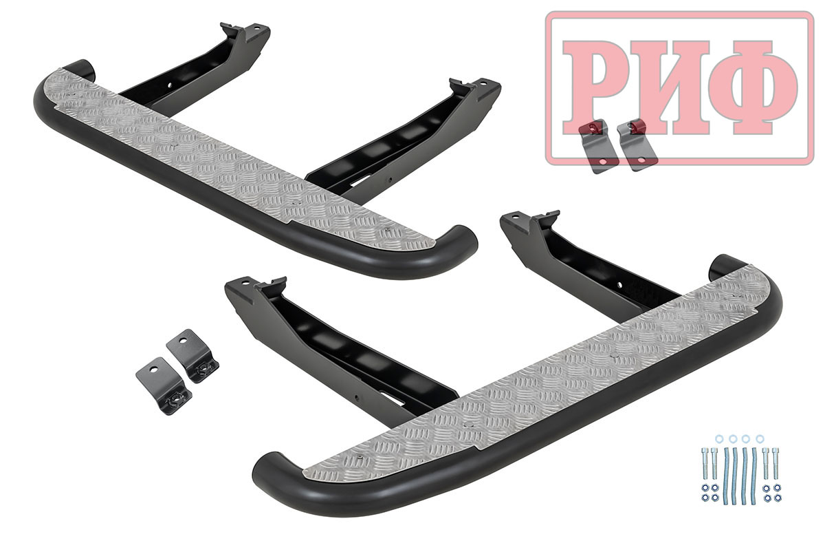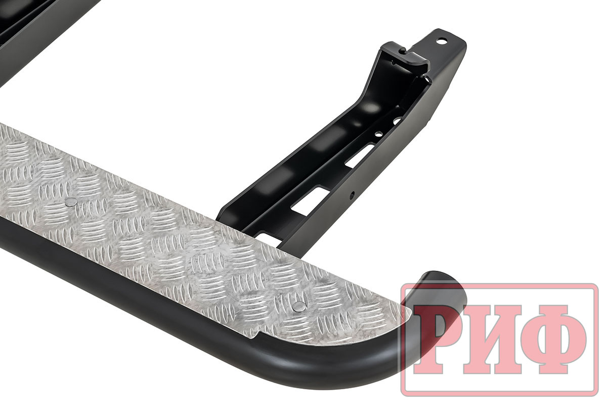 Конструкция порогов РИФ крайне прочна и долговечна, пороги рассчитаны на эксплуатацию в тяжелых условиях – они изготовлены из цельной стальной трубы без применения сварки. Пороги крепятся к раме с помощью стремянок.