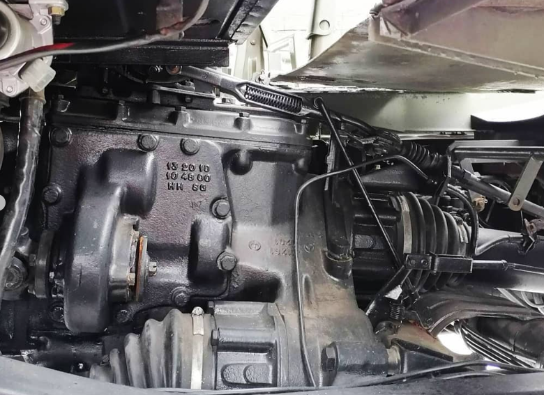 Начали с главного – с двигателя. От природы старый вояка оборудован 6-ти цилиндровым карбюраторным бензиновым двигателем, поэтому никаких других вариантов кроме пересадки сердца не рассматривалось. Но вскрытие показало что не все так просто… Родной двигатель очень плотно упакован под кабиной. При этом стоит чуть наискосок и имеет оба коллектора с правой стороны. В общем, большинство популярных используемых для свапа двигателей установить на место родного похоже не получится…
