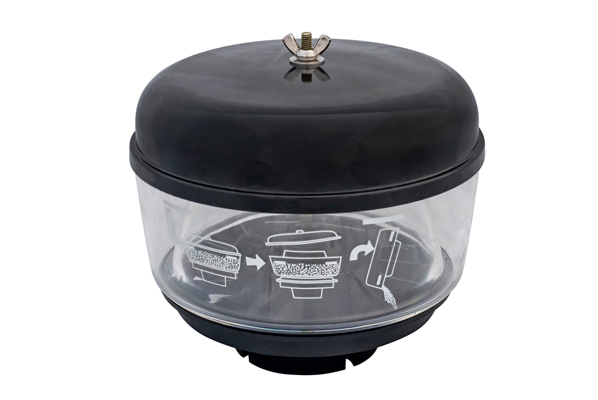 Насадка-сеператор для предварительного отделения твердых частиц (песка, крупной пыли) при движении в условиях сильной запыленности (песчанная буря). Устанавливается на место штатного пластикового воздухозаборника на и с диаметром верхней части 3.5″.